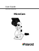 English 3 Introduction The Polaroid MicroCam is designed to provide instant photographic capability to a wide variety of light microscopes. The camera is simple to operate, and is easily attached to the microscope’s viewing tube, in place of the eyepiece. (Note: The camera also can be attached to the phototube, if preferred.) The camera can make automatic exposures ranging from 1/60 sec. to 161⁄2 minutes; it also can be set for manual operation to make longer exposures.
