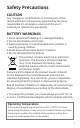 Safety Precautions CAUTION Any changes or modifications in construction of this device which are not expressly approved by the party responsible for compliance could void the user's authority to operate the equipment. BATTERY WARNINGS 1 Avoid contact with leaking or a damaged battery. 2 Do not short battery terminals. 3 Adult supervision is recommended when product is used by young children. 4 Avoid areas of excessive heat or moisture. 5 Do not disassemble the battery.
