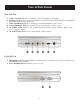 View of Side Panels Ride Side View 1. Volume Control Knob: Used to adjust the volume of headphones and speaker 2. Headphone Jack: Used to connect to headphones for private listening. When headphone is plugged in, the speakers will automatically turnoff. 3. Audio Input/Output Jack: For connecting to an external amplifier or audio source 4. Video Input/Output Jack: For connecting to an external monitor or video source 5. AV IN/OUT Switch: Switch to “IN” to input external Audio/Video signal.