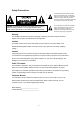 Safety Precautions The lightning flask with arrowhead symbol, within an equilateral triangle, is intended to alert the user to the presence of uninsulated “dangerous voltage” within the product’s enclosure that may be of sufficient magnitude to constitute a risk of electric to persons. CAUTION: TO REDUCE THE RISK OF ELECTRIC SHOCK, DO NOT REMOVE COVER (OR BACK). NO USE-SERVICEABLE PARTS INSIDE. REFER SERVICING TO QUALIFIED SERVICE PERSONNEL.