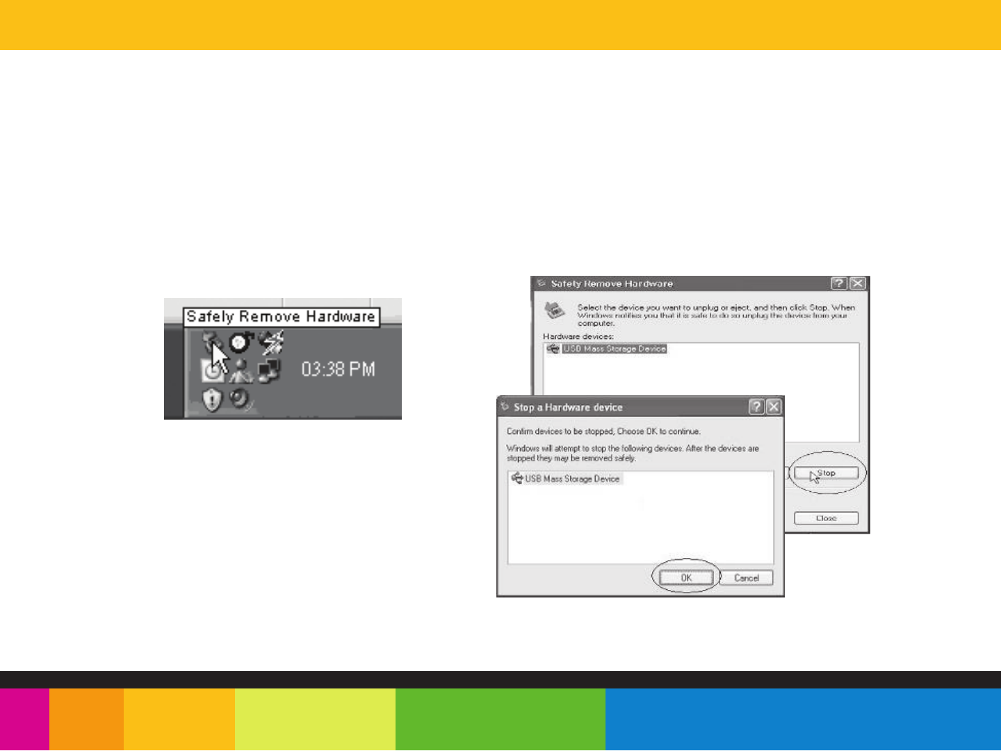 3. When the “Stop a Hardware device” appears, click “OK” to disconnect the USB mass storage device, and unplug the player safely.