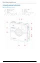 Polaroid Socialmatic Camera Cámara Polaroid Socialmatic _____________________________________________________________________________________________________________________________________________ 3 Especificaciones de funciones 3.1 Conociendo su cámara 1. 2. 3. 4. 5. 6. Botón de encendido Botón de reinicio LED SUB LCD Ranura de tarjeta microSD Conector del adaptador DC 7. 8. 9. 10. 11. 12. 8 Conector USB Altavoz Micrófono Cámara frontal (principal) Flash Botón de disparador .