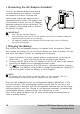 • Connecting the AC Adaptor (Included) Turn off the camera before connecting or disconnecting the adaptor. Connect the adaptor as shown to power the camera and charge the battery from a household power outlet. The camera will automatically switch over to AC adaptor powered operation when connected. The AC adaptor can be used with or without the battery in place. IMPORTANT! • Only use the included adaptor.
