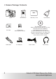 Table of Contents 1 Getting Started ...................................................................... 7 • • • • • • • • Camera Package Contents......................................................... 8 Attaching the Neck Strap .......................................................... 9 Installing and Removing the Battery............................................ 9 Connecting the AC Adaptor (Included) ...................................... 10 Charging the Battery ...................................