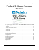 Pololu AVR Library Command Reference © 2001–2015 Pololu Corporation Pololu AVR Library Command Reference View document on multiple pages. [https://www.pololu.com/docs/0J18] View this document as a printable PDF: avr_library_commands.pdf [https://www.pololu.com/docs/pdf/0J18/ avr_library_commands.pdf] 1. Introduction . . . . . . . . . . . . . . . 2. Orangutan Analog-to-Digital Conversion 3. Orangutan Buzzer: Beeps and Music . . 4. Orangutan Digital I/O . . . . . . . . . . 5. Orangutan LCD . . . . . . .