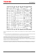 TB67S249FTG Pin assignment NC VMB VMB GND NC GND VREFB VREFA VCC VCC OSCM NC (Top View) 36 35 34 33 32 31 30 29 28 27 26 25 NC 37 24 OUTB+ NC 38 23 OUTB+ DMODE0 39 22 RSBGND DMODE1 40 21 RSBGND DMODE2 41 20 OUTB- CW/CCW 42 CLK 43 ENABLE 44 17 OUTA- 45 16 RSAGND MO 46 15 RSAGND LO1 47 14 OUTA+ LO2 48 13 OUTA+ 3 4 5 6 7 8 9 10 11 12 AGC1 CLIM1 FLIM BOOST LTH GND NC VMA NC 2 VMA 1 CLIM0 18 OUTA- AGC0 RESET 19 OUTB- TB67S249FTG Note: Please so