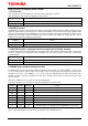 TB67S249FTG Pin name Input-Output signal Input-Output equivalent circuit VCC 1 kΩ VREFA VCC VCC voltage range 4.75 V ≤ VCC ≤ 5.25 V VREFA VREF input voltage range GND ≤ VREF ≤ 3.6 V VCC 1 kΩ VREFB VREFB VMA VMA VMB OUT A+ OUTA+ VM operation voltage range 10 V ≤ VM ≤ 47 V OUTA- OUT AVMB RSAGND OUT B+ Output pin voltage range 10 V ≤ VM ≤ 47 V OUT B- OUTB- OUTB+ RSAGND RSBGND RSBGND Note: The equivalent circuit diagrams may be simplified or omitted for explanatory purposes.