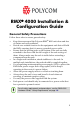 RMX® 4000 Installation & Configuration Guide General Safety Precautions Follow these rules to ensure general safety: • • • • • • • • • Keep the area around the Polycom RMX® 4000 unit clean and free of clutter and well ventilated. Decide on a suitable location for the equipment rack that will hold the RMX, ensuring that it is near a grounded power outlet. Ensure that the leveling jacks on the bottom of the rack are fully extended to the floor with the full weight of the rack resting on them.