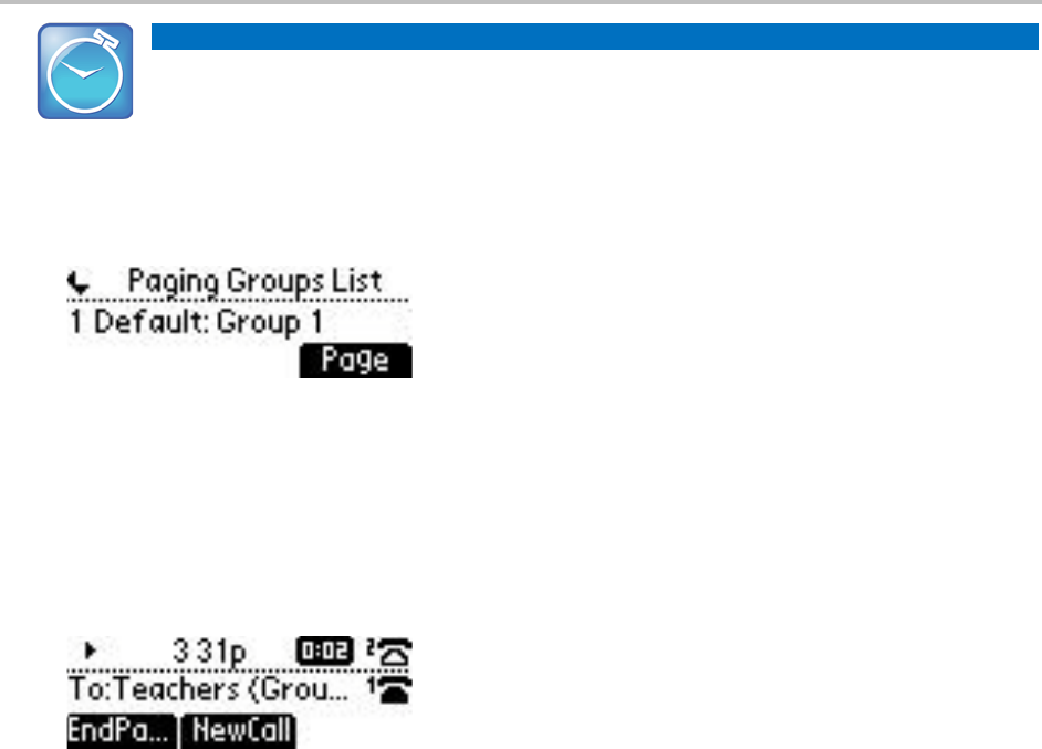 To automatically send a page to the default paging group, press and hold the Paging soft key.