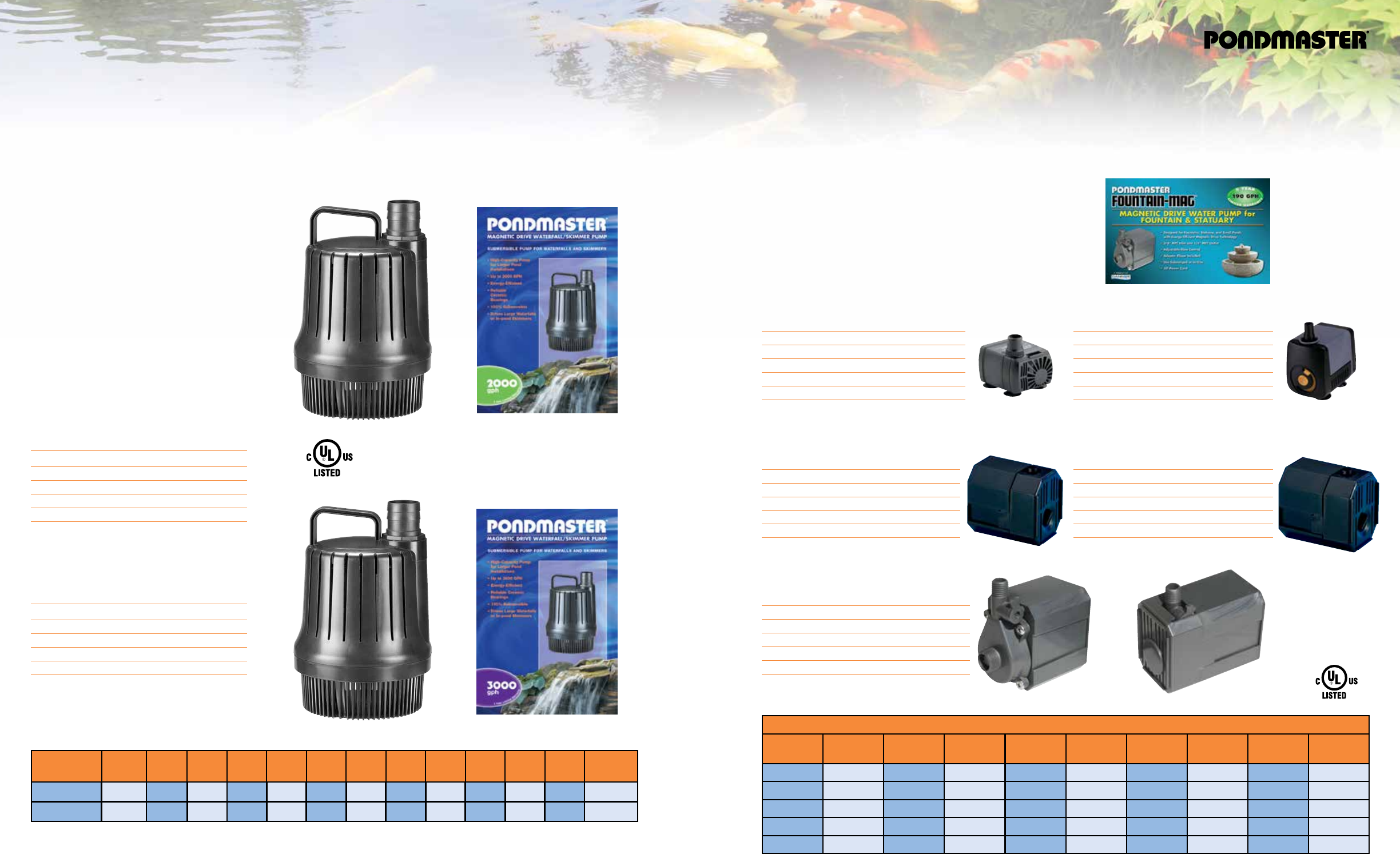PONDMASTER MAGNETIC DRIVE WATERFALL/SKIMMER PUMPS are high capacity pumps designed