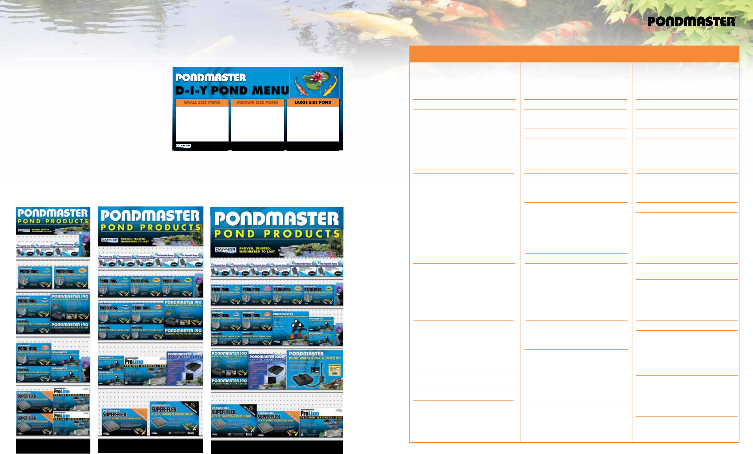 PONDMASTER D-I-Y POND MENU HEADER - ITEM# 32510