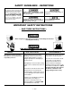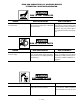 READ AND UNDERSTAND ALL WARNINGS BEFORE ATTEMPTING TO OPERATE GENERATOR. RISK OF ELECTROCUTION AND FIRE (cont’d) HAZARD Operation of generator in rain, wet, icy, or flooded conditions. Use of worn, damaged, undersized or ungrounded extension cords. WHAT COULD HAPPEN Water is an excellent conductor of Operate generator in a clean, dry, electricity! Water which comes in well ventilated area. Make sure contact with electrically charged hands are dry before touching unit.