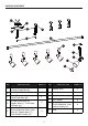 CONTENIDO DEL PAQUETE A C D F B G E E H D J I J K PIEZA DESCRIPCIÓN A Abrazadera de montaje (preensamblada al vástago de suministro de alimentación (B)) 1 F Vástago de apoyo 4 Vástago de suministro de alimentación Tornillo (preensamblado al vástago de suministro de alimentación (B)) Aro decorativo (preensamblado al vástago de suministro de alimentación (B), vástago de apoyo (F), ensamble del cabezal del carril (H)) Tapa de extremo decorativa (preensamblada al vástago de suministro de alimenta