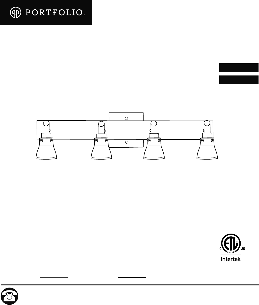 ITEM #0008025 0037316 4-LIGHT VANITY BAR PORTFOLIO® and PORTFOLIO & DesignTM are trademarks or registered trademarks of LF, LLC. All rights reserved. MODEL #VB70BNK-4 VB70-4ORB Français p. 10 Español p. 19 3187807 ATTACH YOUR RECEIPT HERE Serial Number APPROVED FOR USE IN DAMP LOCATIONS Purchase Date Questions, problems, missing parts? Before returning to your retailer, call our customer service department at 1-800-643-0067, 8 a.m. - 6 p.m., EST, Monday - Thursday, 8 a.m. 5 p.m., EST, Friday.