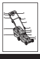 7. Battery charger LED does not flip to green. A. Battery needs to be diagnosed. Take to authorized service center. 8. Mower not picking up clippings with bag. A. Remove mulch plate when bagging. B. Chute clogged. Release switch lever to turn mower off. Remove safety key. Clear chute of grass clippings. C. Too much cut grass. Raise cutting height of wheels to shorten length of the cut. D. Bag full. Empty bag more often. 9. When mulching there are clippings visible. A. Too much cut grass.