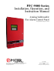 PFC-9000 • 5403535 • REV G • 9/08 Electrical Specifications Input Power The PFC-9000 operates on a nominal 120 or 240 VAC with a minimum and maximum line voltage of 102 VAC and 132 VAC or 204 VAC and 264 VAC respectively. A resettable 4-Amp fuse is installed on the primary side of the transformer-input power. The transformer is a 24-volt transformer that provides 12 Amps of power to the panel. For more detailed information on power consumption refer to the battery calculation sheet.