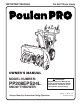IMPORTANT MANUAL Do Not Throw Away OWNER'S MANUAL MODEL NUMBER: PP208EPS24L SNOW THROWER WARNING: Read the Owner's Manual and follow all Warnings and Safety Instructions. Failure to do so can result in serious injury. Always Wear Eye Protection During Operation 440575 11.09.10 TH Printed in U.S.A.
