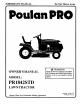 IMPORTANT MANUAL Do Not Throw Away Poulan WARNING: OWNER'S MANUAL Read the Owner's Manual and follow all Warnings and Safety Instructions. Failure to do so can result in serious injury. MODEL: PR1842STD LAWN TRACTOR 183748 Always Wear Eye Protection During Operation 5.2.02 TR Printed in U.S.A.