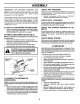 ASSEMBLY CHECK IMPORTANT: FOR SHIPPING PURPOSES, THE MULCHER PLATE WAS PREATTACHED TO YOUR MOWER. THE MULCHER PLATE MUST ONLY BE USED WITH THE MULCHING BLADES THAT CAME PACKED SEPARATELY IN THE CARTON. • MOWER FOR CHECK MULCHER PLATE DECK LEVELNESS For best cutting results, mower housing should be properly leveled. See"TO LEVEL MOWER HOUSING" in the Service and Adjustments section of this manual.