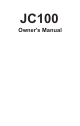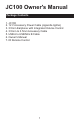 JC100 Owner's Manual Package Contents 1. JC100 2. 12 V Accessory Power Cable (cigarette lighter) 3. 3.5mm Earphone with Integrated Volume Control 4. 3.5mm to 3.5mm Accessory Cable 5. USB A to USB Mini B Cable 6. Owner's Manual 7.