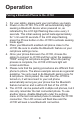 Operation Linking the FM Transmitter 1. When the JC100 is powered on, the LCD will show an FM frequency channel (for example, 88.1 Mhz). FM MHz 2. Turn your car radio on and tune to an unused FM station between 88.1 and 107.9 Mhz. 3. Use the QS button on the JC100 to change to the preset frequency nearest the selected car radio frequency. 4. Press the "+" or "-" button to change the JC100 frequency to match the frequency selected on your car radio.