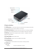 . Device Interface 5.1 USB Interface˖The built-in Micro USB 2.0 is for data transfer and charging the internal battery when connected directly into the computer’s USB port or wall chargers. 5.2 USB Host Interface: The built-in USB 2.0 Host Interface for connecting any USB Mass Storage device and for charging mobile devices such as smartphones, MP3 Players, and tablets. 5.3 SD Slot: Available SD slot to support SD, SDHC, and SDXC. SD adapter is needed to support Micro SD and Mini SD. 5.