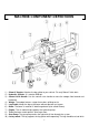 MACHINE COMPONENT DEFINITIONS 1.) 50mm/2’ Coupler. Attaches the log splitter to your vehicle. Fits only 50mm/2’ hitch balls. 2.) Hydraulic Cylinder. It is rated to 3500 psi. 3.) Control Valve Handle. Use the control valve handle to move the wedge slide forward and backward. 4.) Wedge. The wedge features a taper that makes splitting easier. 5.) Log Cradle. Keeps the log on the beam without operator assistance. 6.) Beam. The beam is made of 6” wide flange beam (also called I-Beam). 7.) Engine.
