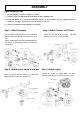 ASSEMBLY Open Shipping Crate 1. Set the shipping Crate on a solid, flat surface. 2. Carefully cut the shipping bands and remove lid of shipping crate. 3. Using two people to lift, carefully remove the engine, oil tank, wheels, tow bar, support legs, and hardware. (For parts reference see the last page in manual) 4. Locate all hardware before beginning assembly.