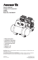 Owner’s Manual 2-Gallon Air Compressor 1.0 HP Oil Free Model No. SAC22HPP • Safety Instructions • Installation & Operation • Maintenance & Storage • Troubleshooting Guide • Parts List • Español, p. 20 • French, p. 42 CAUTION: Before using this product, read this manual and follow all its Safety Rules and Operating Instructions. CALIFORNIA PROPOSITION 65 WARNING: This product contains chemicals known to the State of California to cause cancer, birth defects and/or reproductive harm. 10/04/2017 Part No.