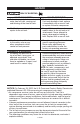 GUÍA DE DIAGNÓSTICO DE PROBLEMAS El desarrollo de reparaciones puede exponer a sitios con corriente viva, partes en movimiento o fuentes de aire comprimido que podrían ocasionar lesiones personales. Antes de intentar reparación alguna, desenchufe el compresor de aire y purgue toda la presión de aire del tanque. PROBLEMA CAUSA CORRECCIÓN Presión baja o insuficiente cantidad de aire. o bien el compresor no se detiene La válvula de desagüe del tanque está abierta. Las conexiones tienen fugas.
