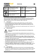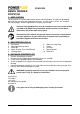 POWX1230 EN Before any maintenance operation, manipulation or any intervention on the machine (such as assembly, disassembly, adjustment, etc), always disconnect the power supply plug and wait until the machine has come to a standstill. It is compulsory to wear certified gloves and protective goggles when using the device. Never use the machine without its protective guard and “spark guards”. Always check that the work supports are firmly fixed before using the machine.