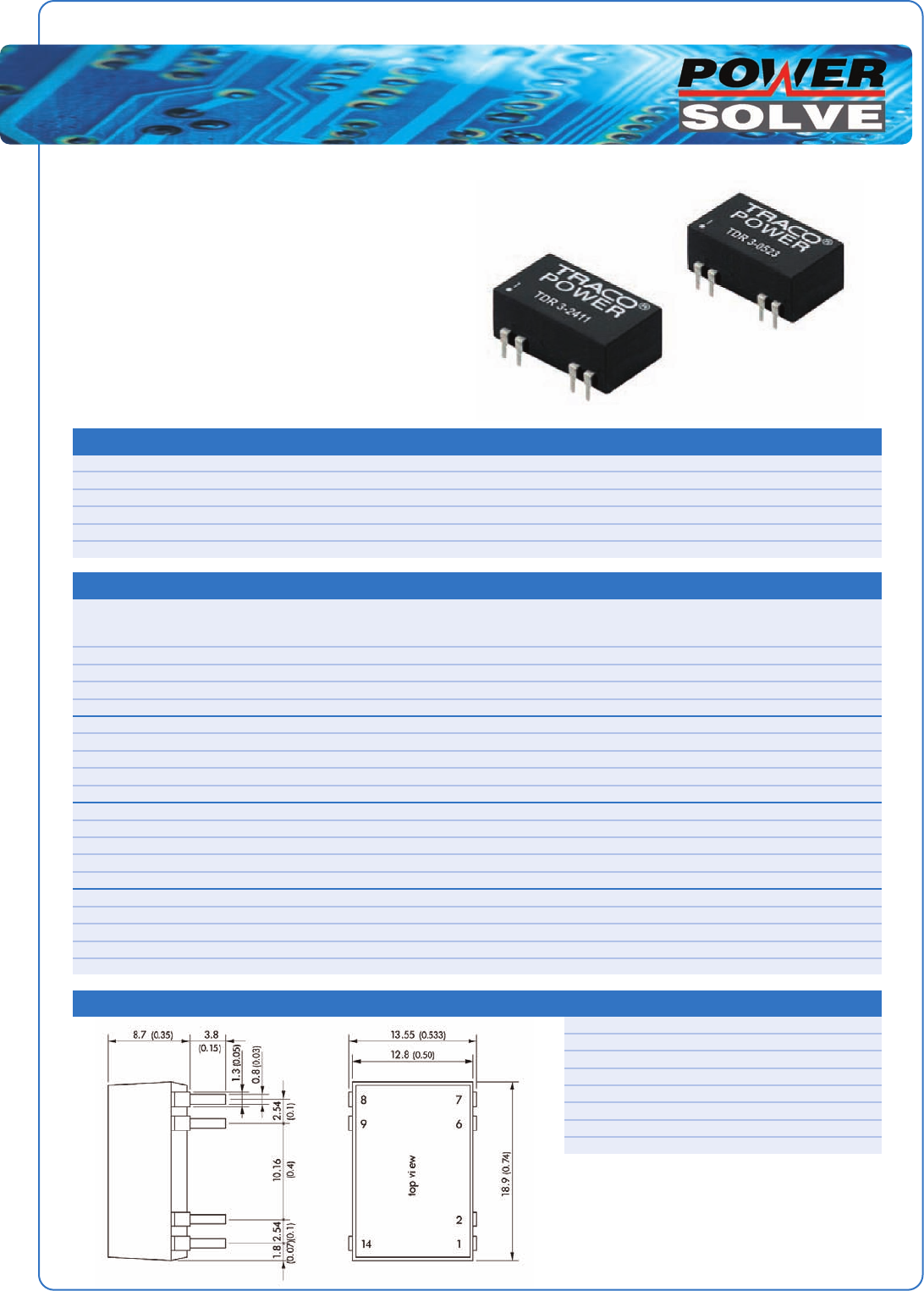 TDR3-0513 4.5 - 9VDC 15VDC 200mA 30mV pk-pk max. 0.2% 1.0% 81%