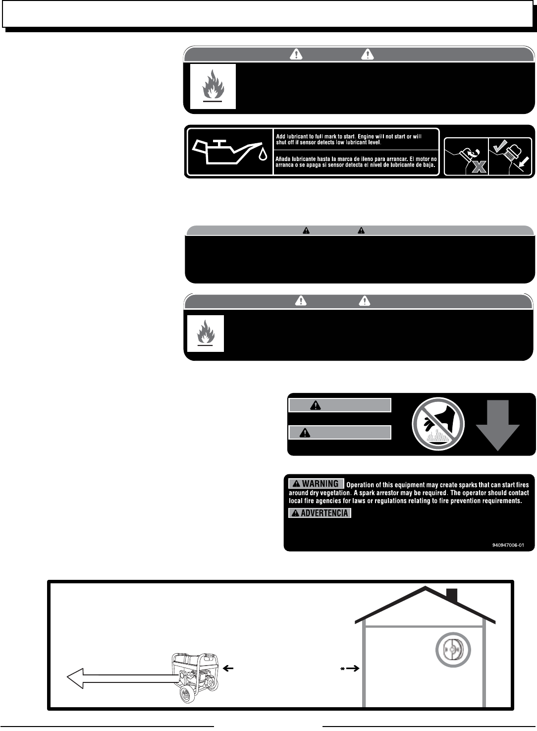 máquina. El calor de los gases del silenciador y el escape pueden prender fuego a objetos combustibles.