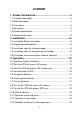 CONTENT 1. Product Introduction ......................................................3 1.1 Functions description .................................................................... 3 1.2 Mode description ........................................................................... 4 1.3 Front panel .................................................................................... 5 1.4 Rear panel ..................................................................................... 9 1.