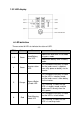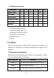LED action summary LED No. 1 2 3 Bypass mode ○ ○ ○ Line mode ○ ○ ○ ● Battery mode ◎ ◎ ◎ ● ● Battery test mode ◎ ◎ ◎ ● ★ Fault mode ◇ ◇ ◇ ◇ ◇ ● Warning □ □ □ ◇ □ ★ 4 5 6 ★ ○: Lightened according to load level ◎: Lightened according to battery level ◇: Depended on the fault/warning status □: Depended on the original display ●: Lightened constantly ★: Flashing 1.3.3 Button There is only one button for ON/OFF/Mute function on this product.