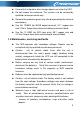 ■ The Line mode If output overloaded, the load percent is shown and alarm will keep twice every second. You should get rid of some unnecessary loads one by one to decrease the loads connected to the UPS less than 90% of its nominal power capacity. Note: Please follow the following steps to connect the generator: ● ● Activate the generator and wait until the operation is stable before supplying power of the generator to the UPS (be sure that the UPS is in idle mode).
