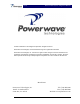 Draft RF Front End System Integraton Manual ® © 2001 Powerwave Technologies Incorporated. All rights reserved. Powerwave Technologies, and the Powerwave logo are registered trademarks Powerwave Technologies, Inc. reserves the right to make changes to the documentation and equipment, including but not limited to component substitution and circuitry changes. Changes that impact this manual may subsequently be incorporated in a later revision of this manual. March 2001 Powerwave Technologies, Inc. 1801 E.