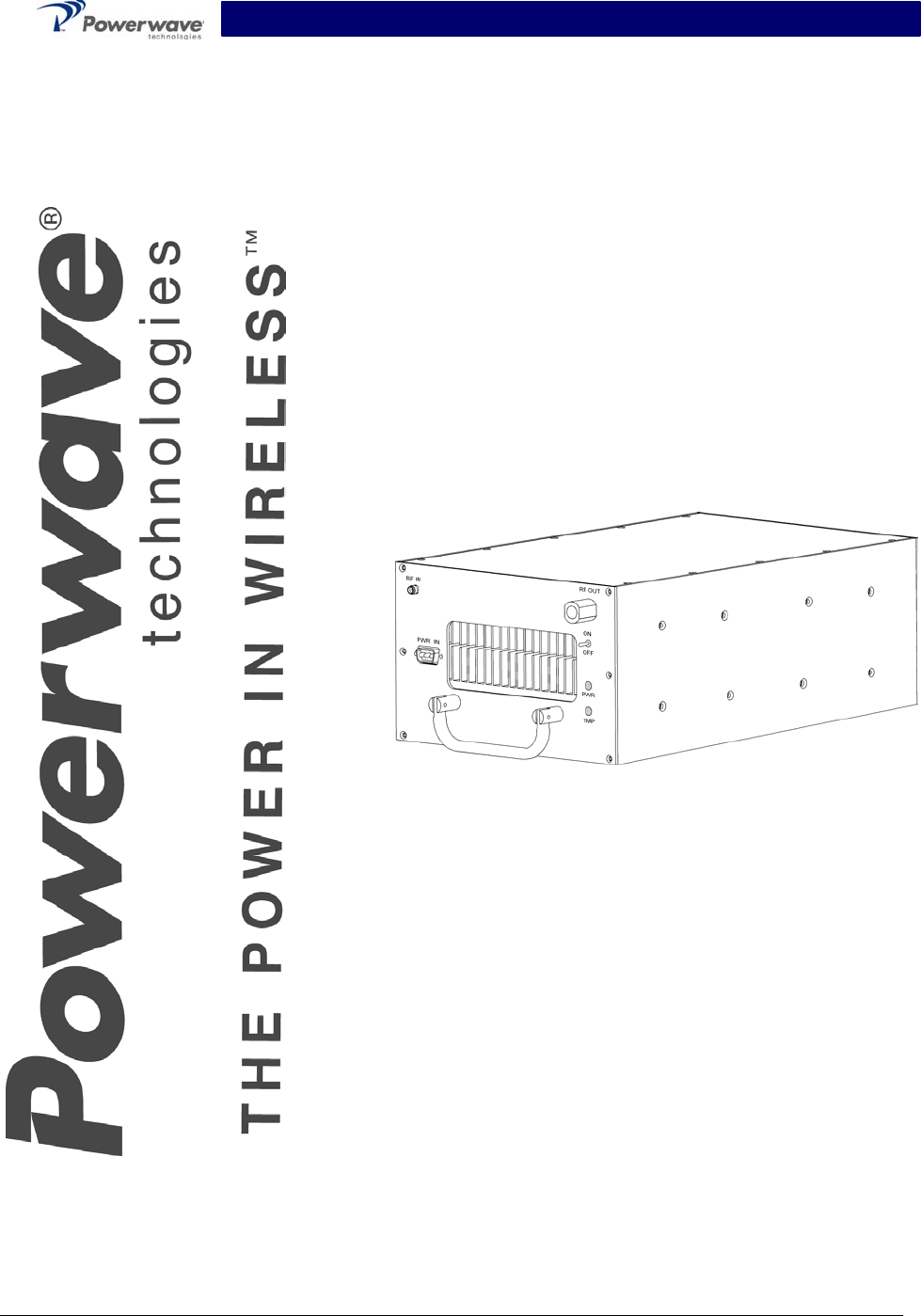 930-1990 MHz Installation and Service Manual Model SPA9329-35 Booster Power Amplifier Copyright Powerwave Technologies, Inc., October 2002.