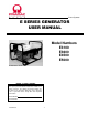 Power Systems E SERIES GENERATOR USER MANUAL Model Numbers E3100 E3600 E4500 E5000 E3600 Model Shown MODEL & SERIAL NUMBER Enter the Model and Serial numbers of your generator in the spaces provided below. Retain these numbers for future reference. The Model and Serial numbers are located on the generator data plate on the alternator case or generator frame, along with other important information.