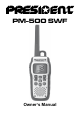 PM-500 SWF INTRODUCTION The PM-500 SWF is a floating, waterproof, portable 2.5-watt two-way VHF marine transceiver. It is compact, lightweight, rugged, and fits easily in your hand. This handheld VHF marine radio will give you consistent, outstanding performance in virtually all conditions and situations. To ensure that you get the most from the PM-500 SWF features, please read this operating guide carefully before using the unit.