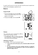 OPERATION In order to get the most out of your new radio, read this owner’s manual completely before attempting to operate the unit. Basics Power On/Off 1. Press and hold to turn the radio ON. A channel number and battery level should appear on the display. 2. Press and hold to turn the radio OFF. Volume The volume level can be adjusted from U0 (no volume) to U7 (maximum volume). 1. Press VOL (s) or (t) to increase or decrease the volume level. U shows on the display and the current volume level flashes.