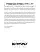 PRESONUS LIMITED WARRANTY PreSonus Audio Electronics Inc. warrants this product to be free of defects in material and workmanship for a period of one year from the date of original retail purchase. This warranty is enforceable only by the original retail purchaser. To be protected by this warranty, the purchaser must complete and return the enclosed warranty card within 14 days of purchase.