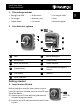 Schnellstartanleitung Prestigio MultiCam DE Linse 2,45 mm/F2.4 Festfokus Blickwinkel des Objektivs 160° G-Sensor 3-achsiger G-Force-Sensor LCD 2,0”, 480x234 Akku Li-Ionen 700 mAh Lebensdauer des Akkus 60 Min. (Aufnahmemodus) Interner Speicher 128MB Externer Speicher Micro-SD/SDHC/SDXC, bis zu 64 GB WLAN IEEE 802.