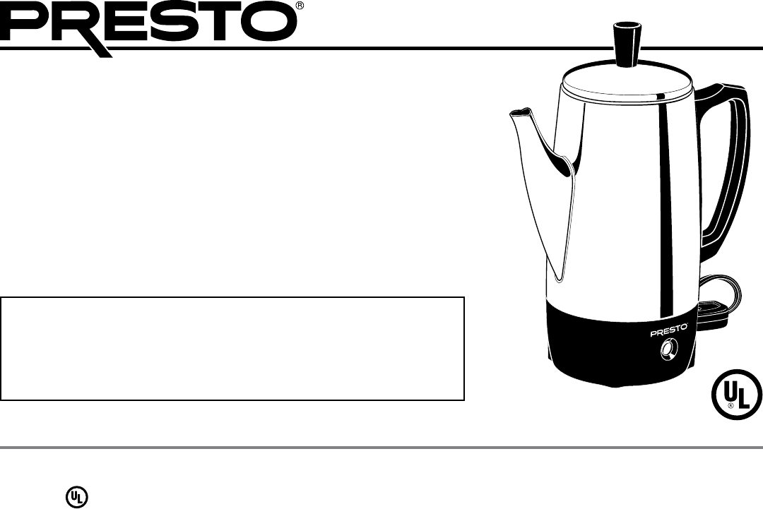 in any manner. Return the appliance to the Presto Factory Service Department for examination, repair, or adjustment.