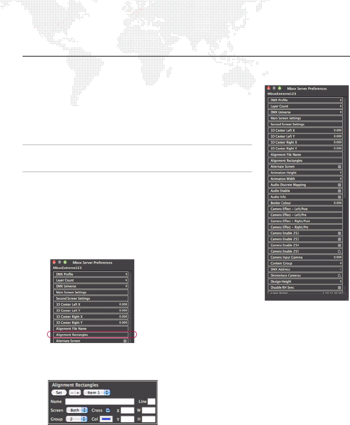 To setup Alignment Rectangles on a server using Mbox Remote application: