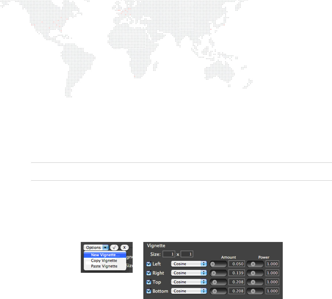 The Vignette tab provides the controls to create custom rectilinear edge masking that can be used on any object.
