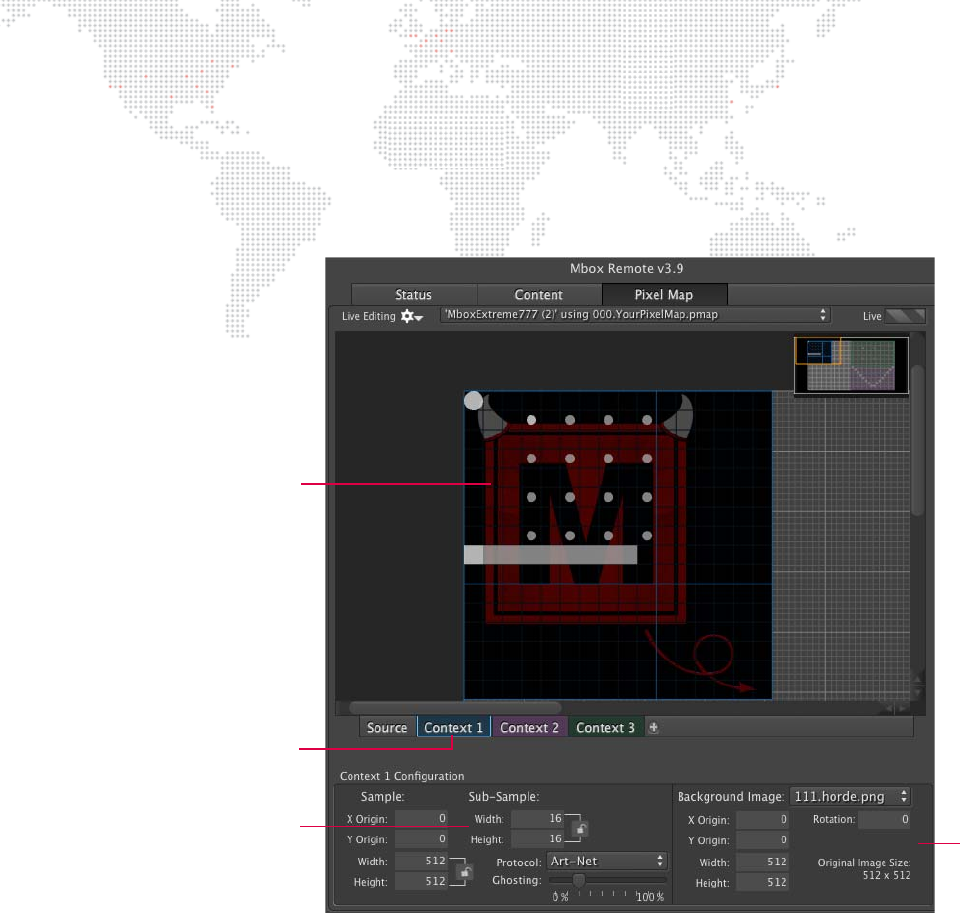 A background image can be added to a context in order to better visualize the pixel mapping configuration. The