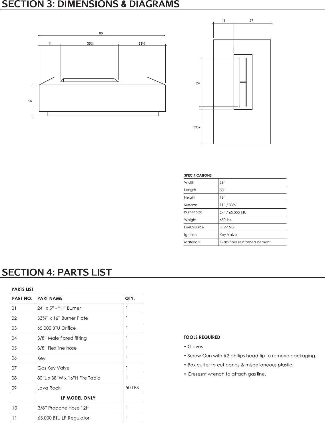 PH-409-1LP 80" Tavola Series Liquid Propane Fire Table with 65,000 BTU Orifice, Glass Fiber Reinforced Cement Construction and Key Valve Ignition in Cafe