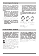 Inhaltsverzeichnis Hinweis zur Verpackungsentsorgung.................................................... Entsorgung der Altgeräte........................................................................ Sicherheitshinweise und Warnungen .................................................... Hinweise .................................................................................................. Umweltschutz und Spar-Tipps................................................................ Gerätebeschreibung.....