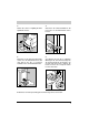 5 Ziehen Sie ebenso sorgfältig die linke Nylonhülle heraus. 7 Ziehen Sie die 3 Kunststoffhülsen, die nun locker in der Rückwand sitzen, heraus. P0077 P0001 6 Entfernen Sie die Polystyrol-Unterlage, stellen Sie die Waschmaschine auf und drehen Sie die 2 restlichen Schrauben aus der Rückwand heraus. 8 Verschließen Sie nun die 3 sichtbaren Öffnungen mit den Kunststoffstöpseln, die auf der Rückseite des Gerätes eingesetzt sind. Hierzu die 3 Stöpsel abtrennen und in die entsprechenden Löcher einstecken.